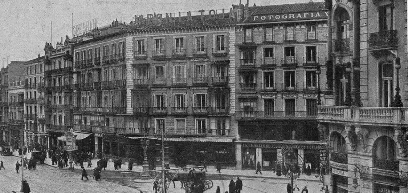 La configuración actual de la corta y monumental calle de Sevilla (antes llamada Ancha de los Peligros) de Madrid, data de finales del siglo XIX. En sus admirables edificios vinieron a instalarse suntuosos comercios relacionados con la joyería (Sainz), la relojería (Alberto Maurer), bisutería y complementos (Casa Thomas) y, por supuesto, importantes cafés.