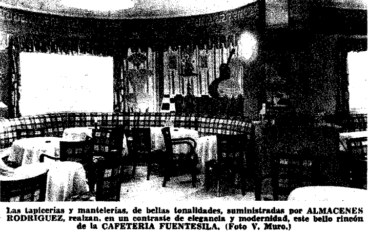 Los cercanos y muy famosos Almacenes Rodríguez surtieron de todo lo necesario al café Fuentesila en su apertura: Tapicerías para sus sillones, menaje, cristalería, etc.