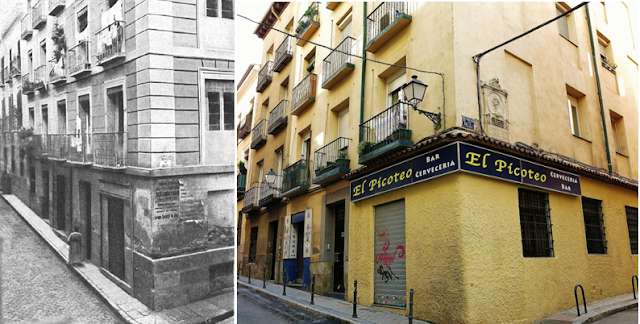 | Fotografía: M.R.Giménez (2012) Gran Vía, 31 esquina a la calle de Mesonero Romanos, en la actualidad. Ya no existe el café Zahara ni la lotería de Doña Manolita, que estaba junto a él. |